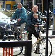 The city was swarming with cyclists. Cars, bikes and pedestrians intersected constantly at a very fast pace. Nobody wore helmets. We often saw several people on one bike including small children, and the passengers usually were not holding on to anything. Many cyclists talked on cell phones while whizzing through traffic.